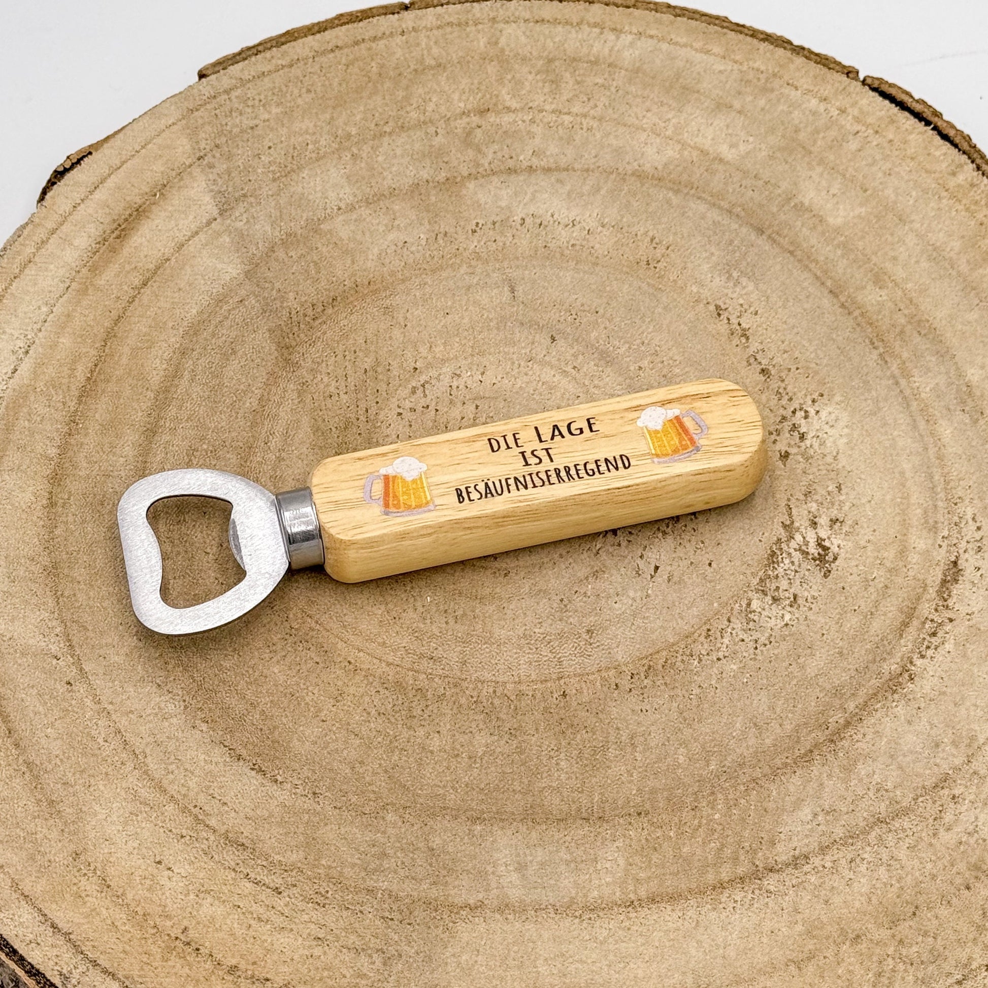 📐 Abmessungen: Der Flaschenöffner hat eine Gesamtlänge von ca. 14 cm wobei der Holzgriff ca. 10 cm misst.