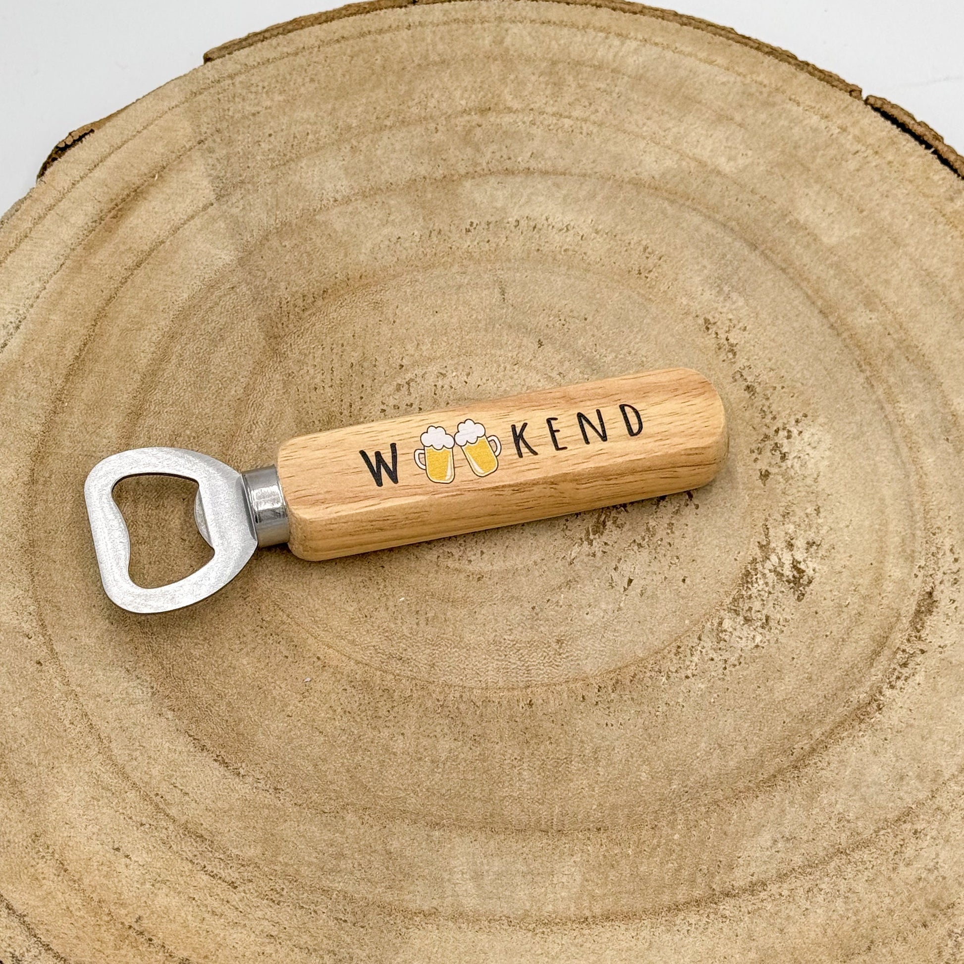 💖 Vielfältige Motive und Texte: Wähle zwischen verschiedenen Motiven und Texten, darunter "Weekend", "Prost" oder "Spar Wasser trink Bier". Jedes Motiv wird mit Liebe zum Detail gestaltet und verleiht dem Flaschenöffner eine persönliche Note.