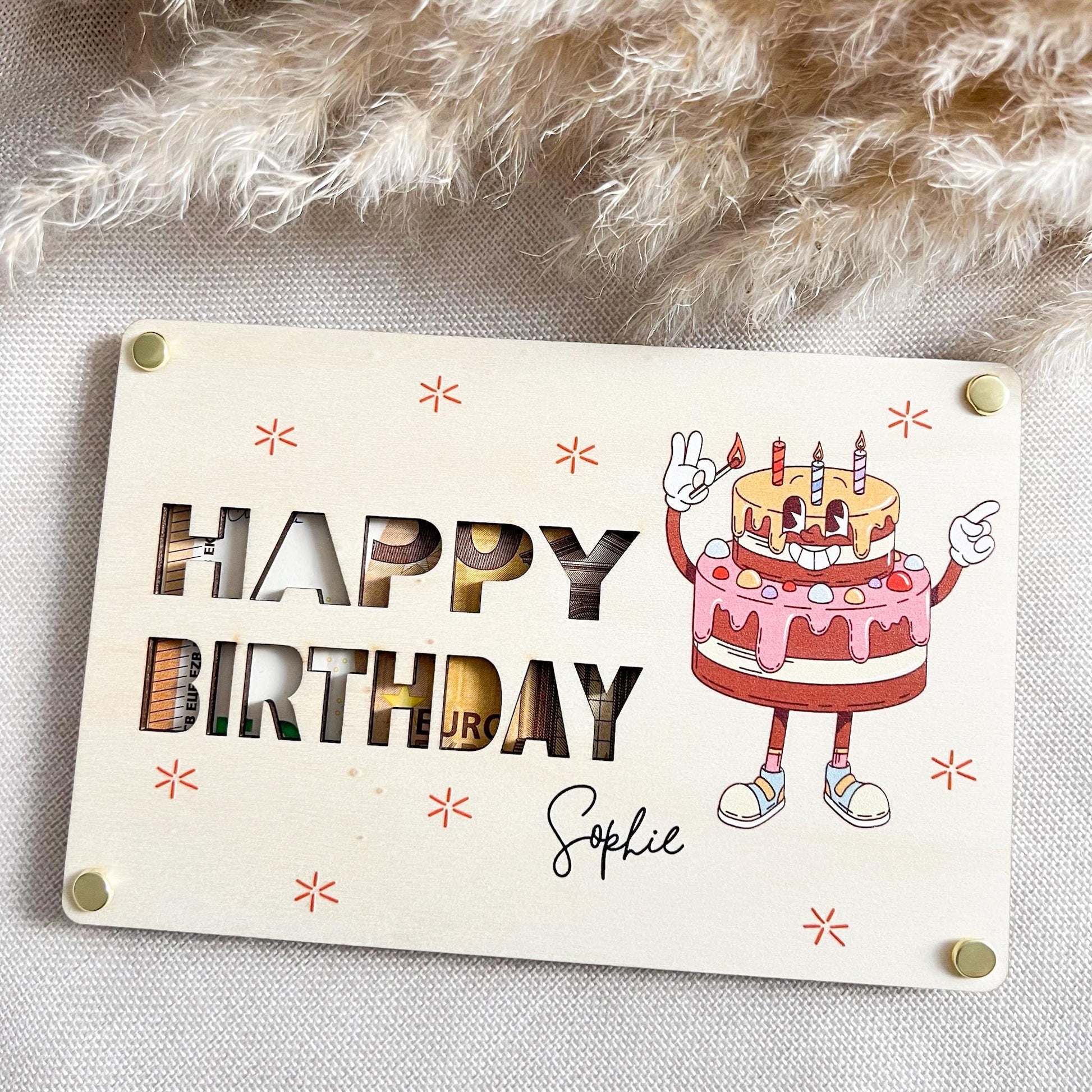 Personalisierte Geldgeschenkkarte aus Holz Perfekt für Geburtstage!