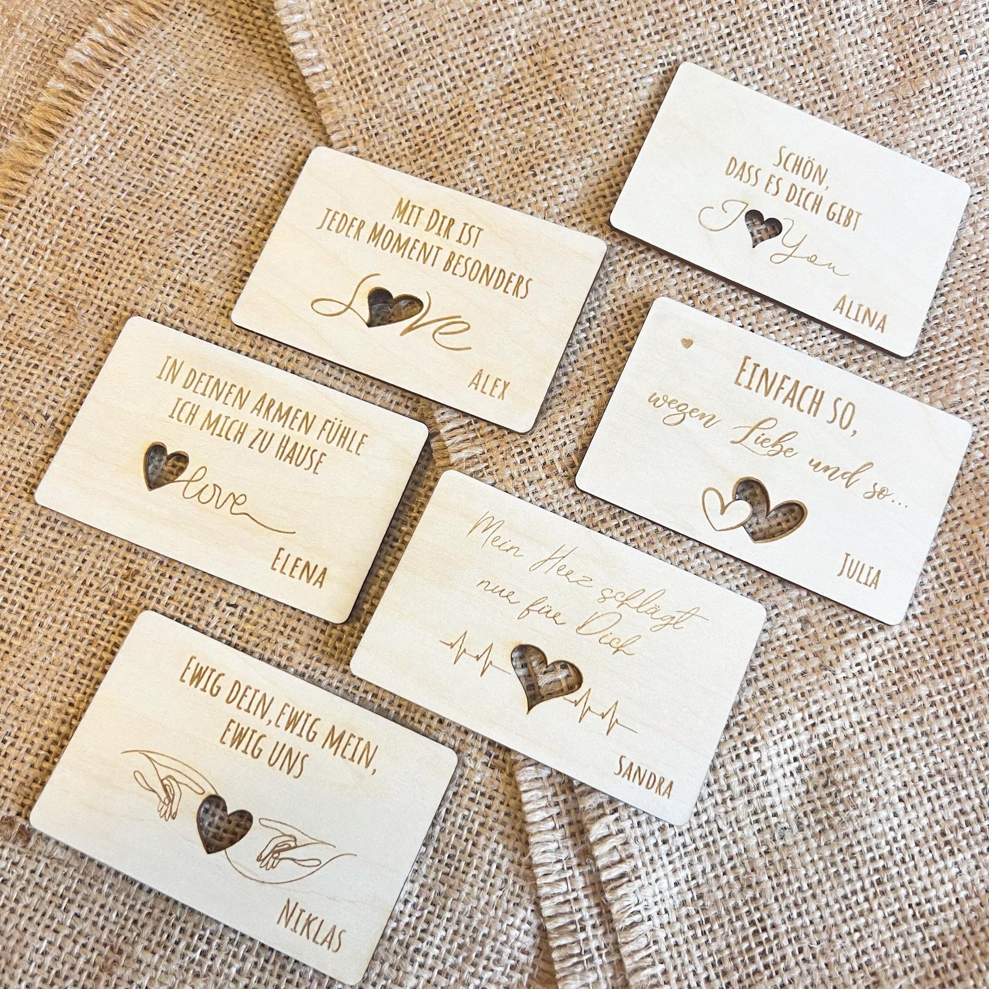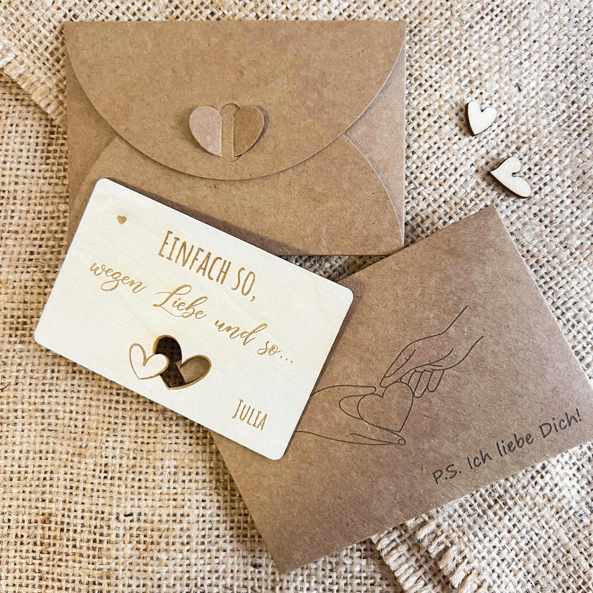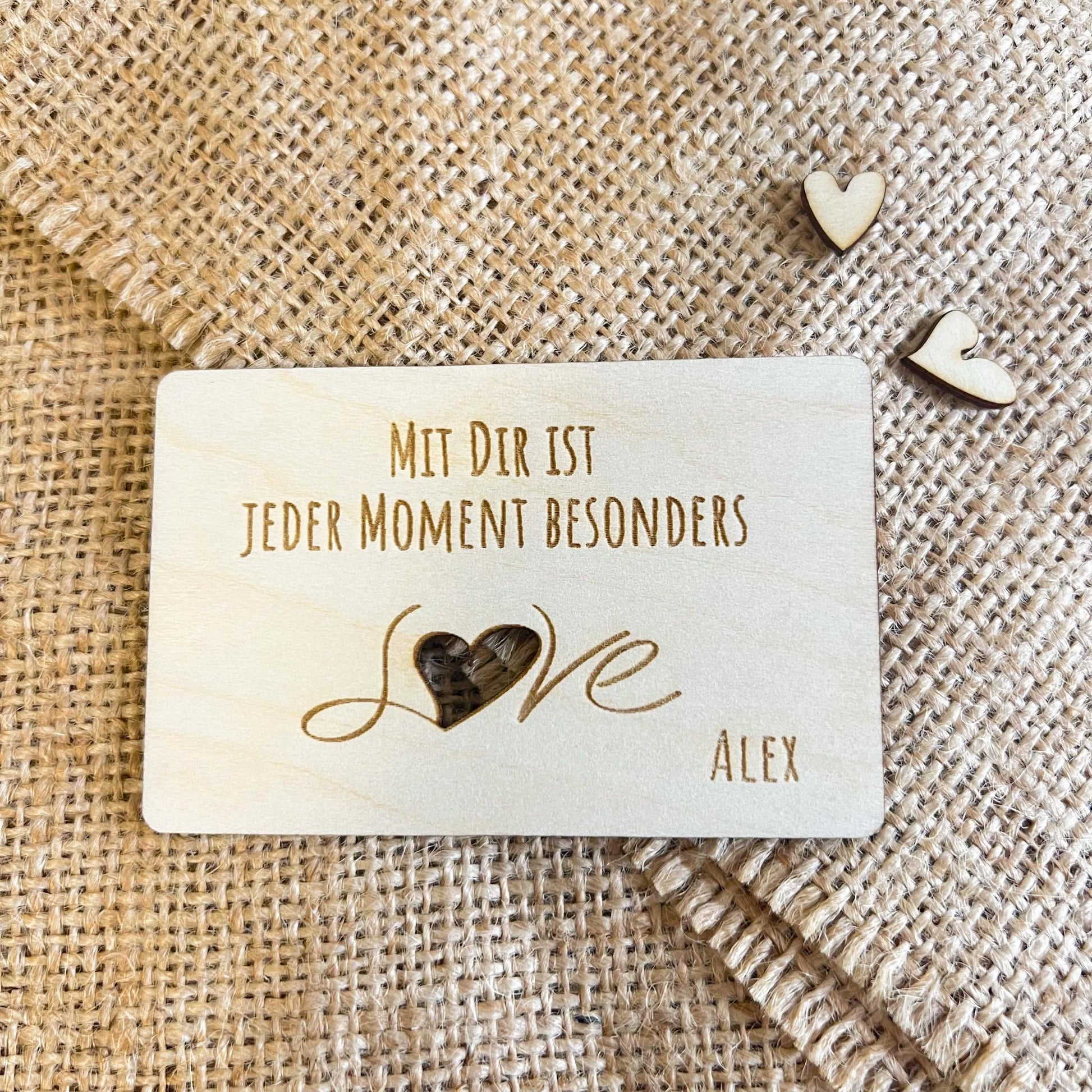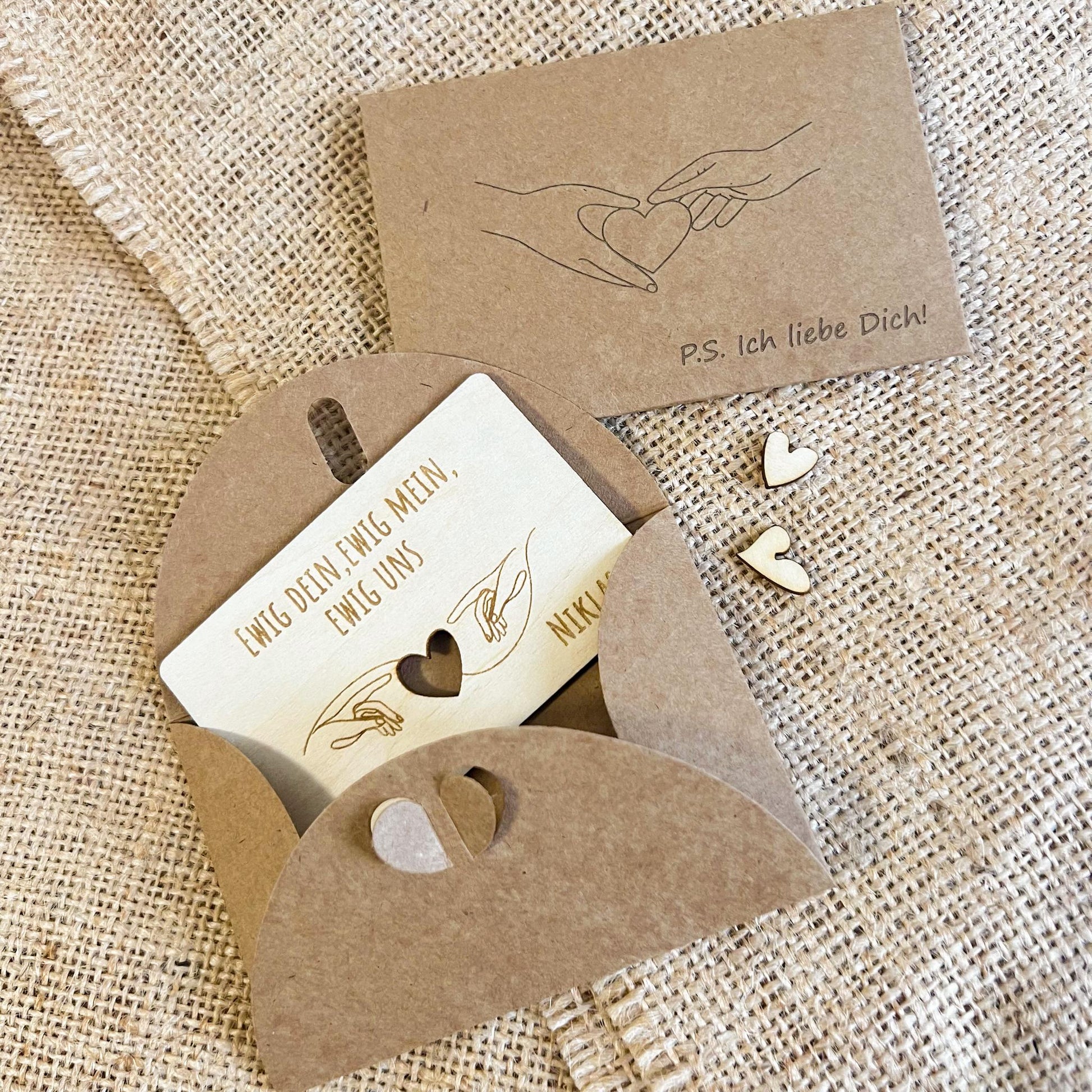 Liebesvisitenkarte mit Umschlag - Holz - Lasegraviert