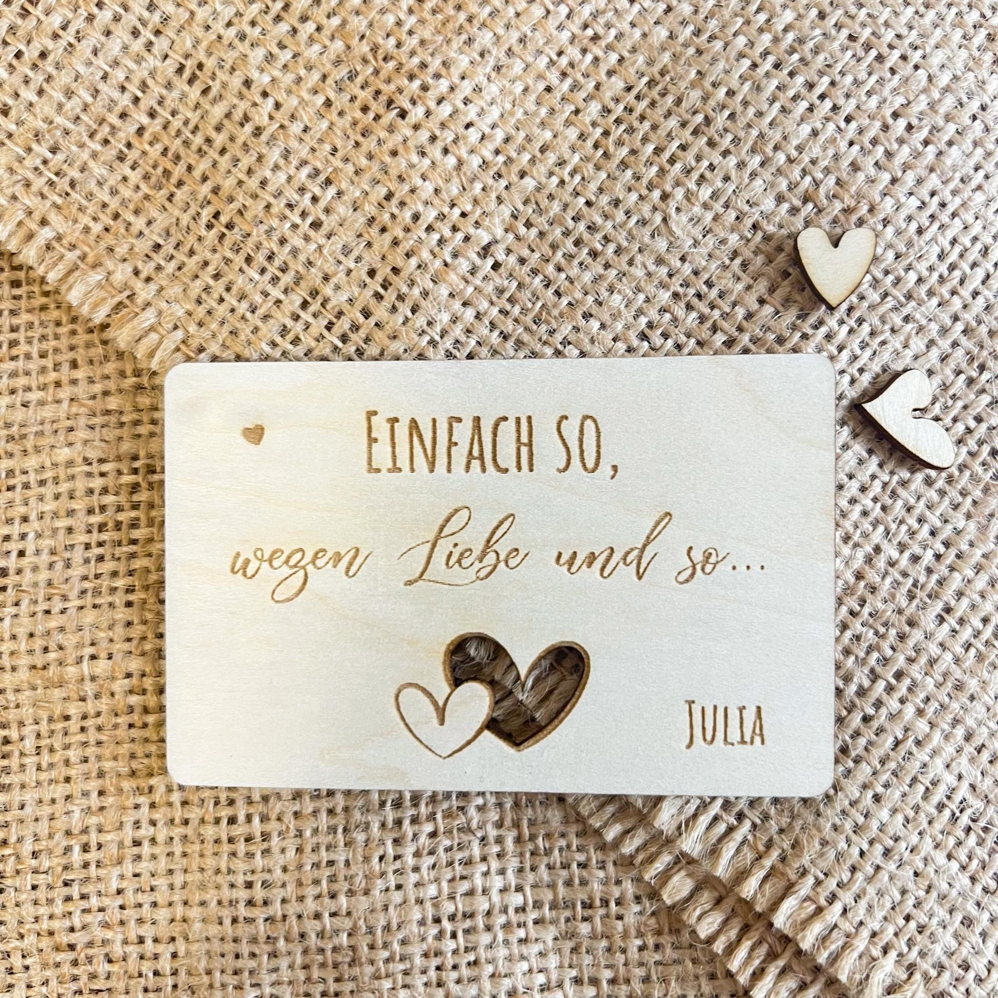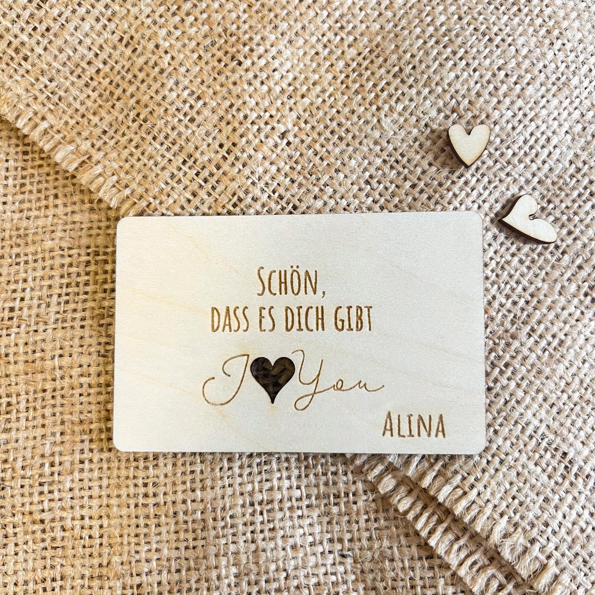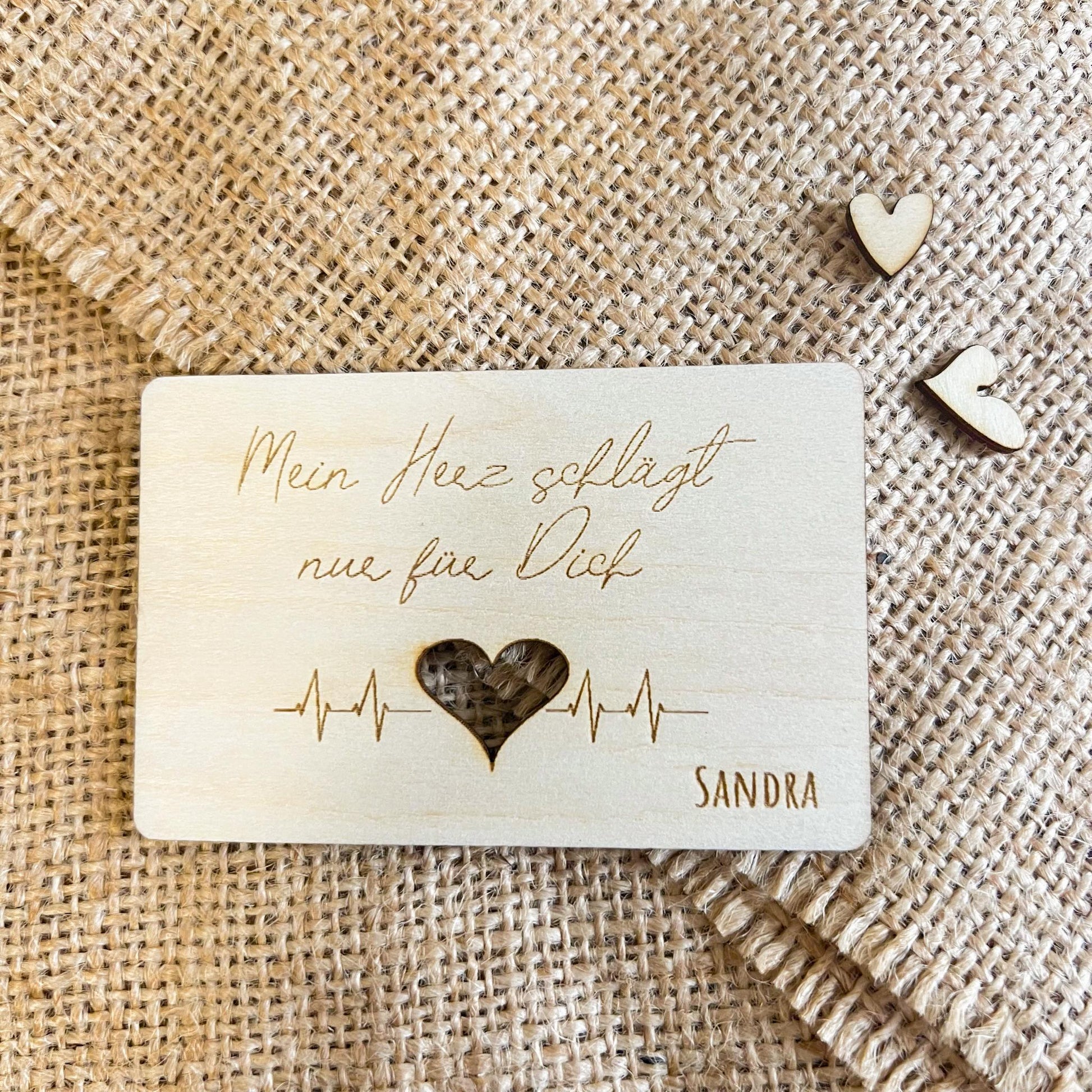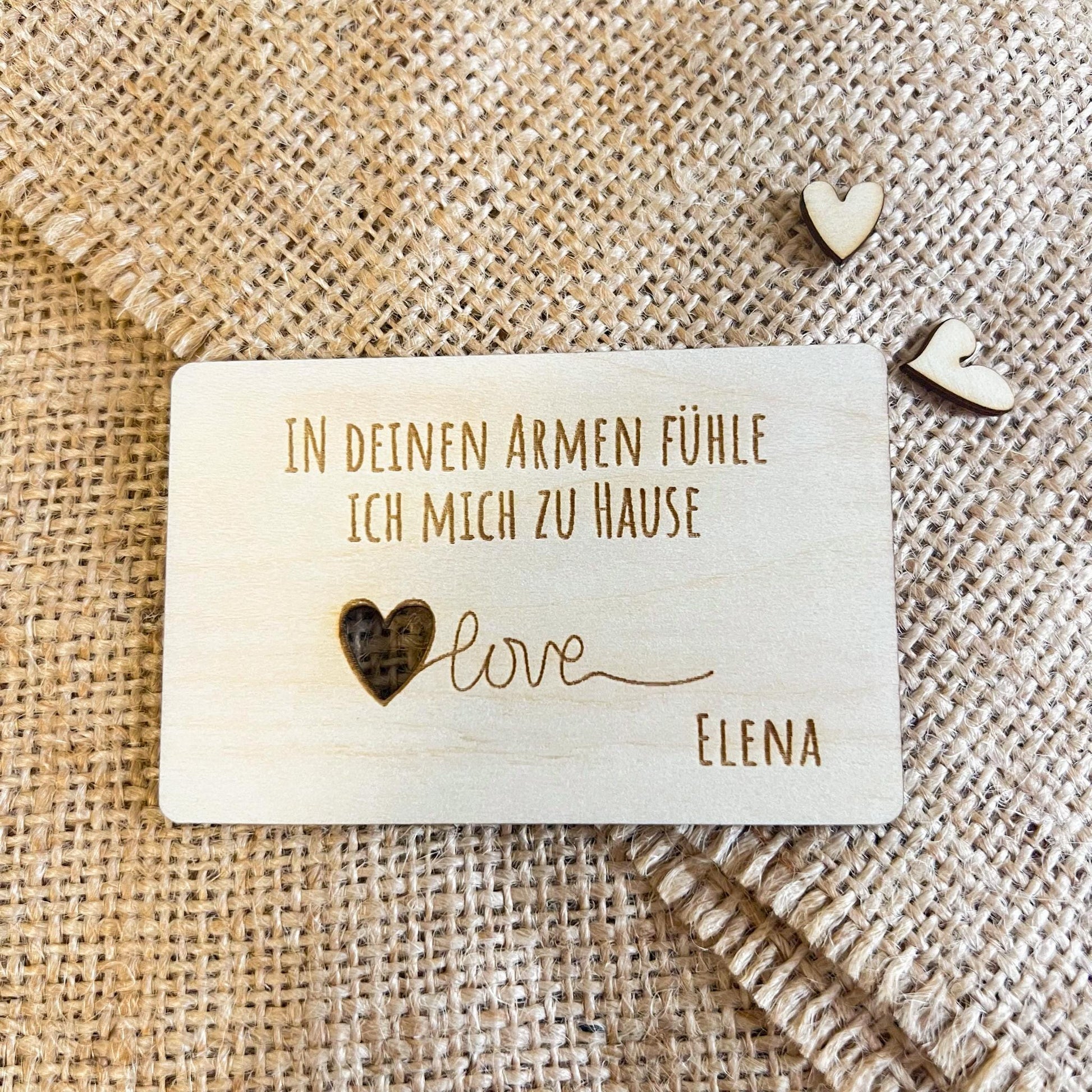 Liebesvisitenkarte mit Umschlag - Holz - Lasegraviert