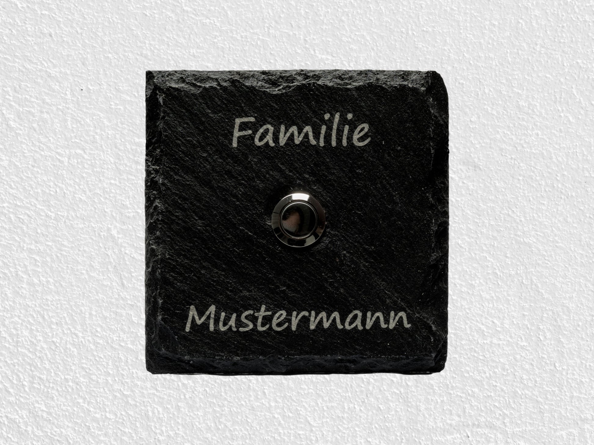 Stilvolles personalisiertes Klingelschild aus Schiefer mit Edelstahl Taster.