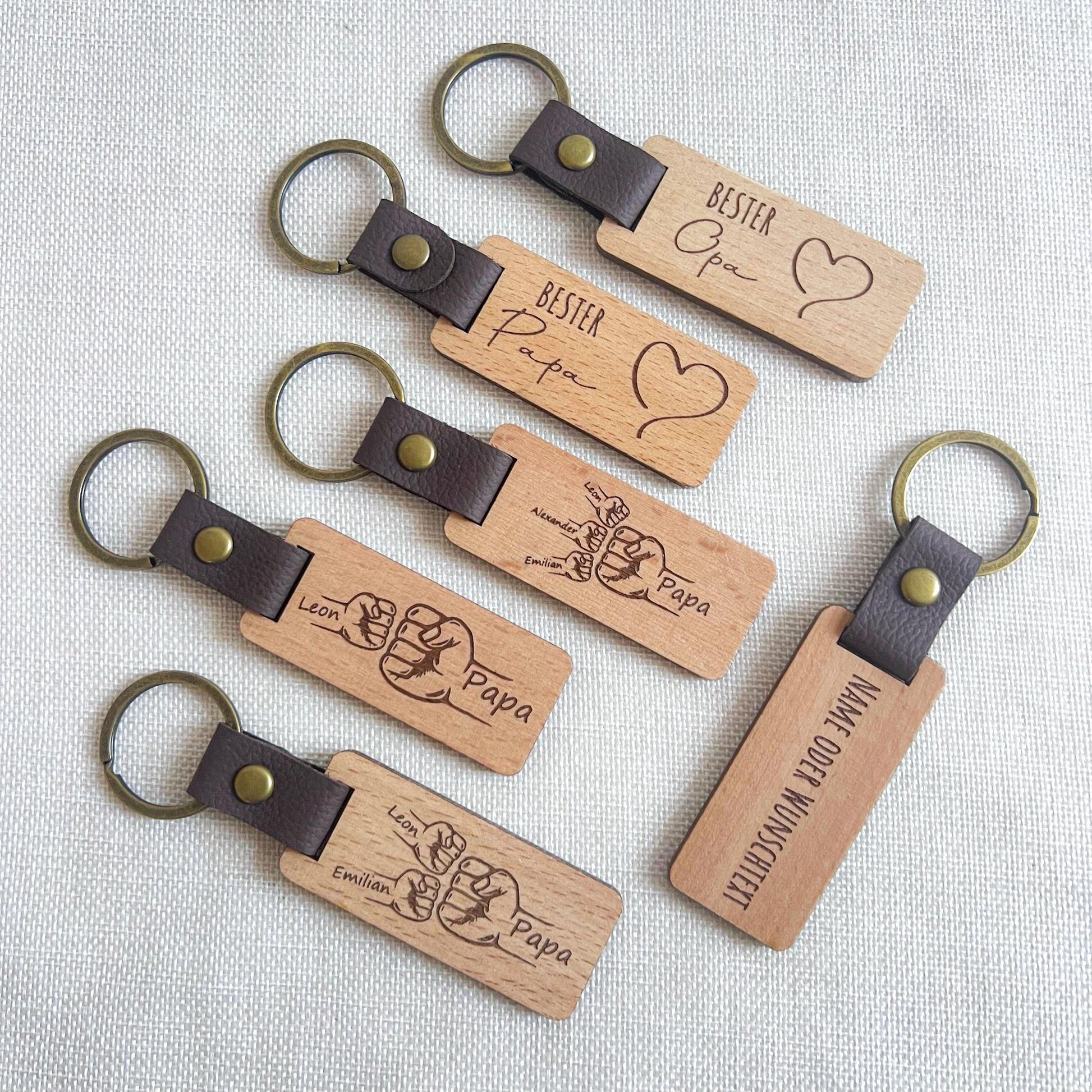 Suchst du ein liebevolles und individuelles Geschenk zum Vatertag? Unser personalisierter Schlüsselanhänger aus Holz ist die perfekte Wahl, um Papa oder Opa eine Freude zu machen! Mit einer hochwertigen Lasergravur gestaltet, kannst du zwischen verschiedenen Motiven oder einem Wunschtext wählen ganz nach deinem Geschmack.
