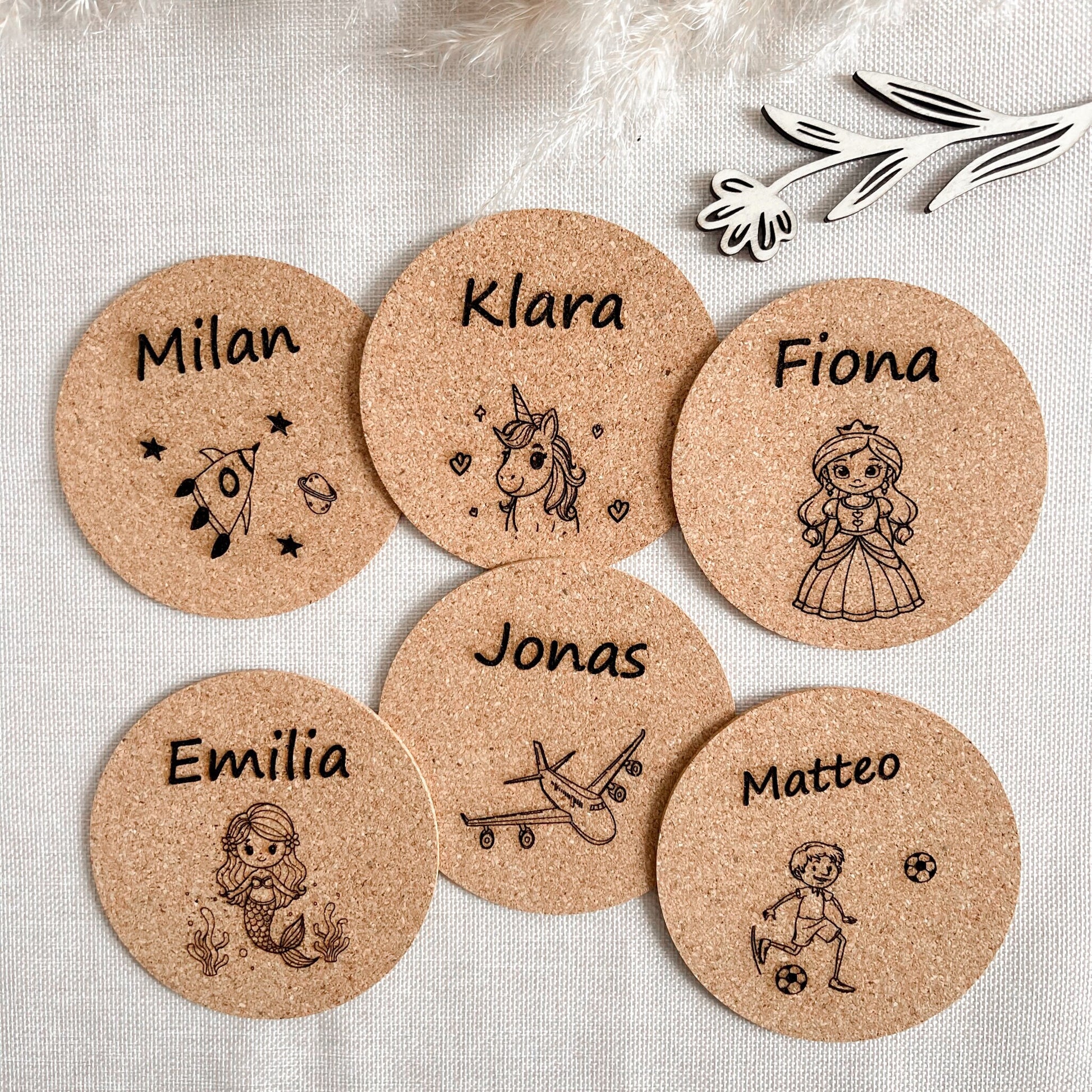 Diese liebevoll lasergravierten Korkuntersetzer sind nicht nur praktisch, sondern auch eine tolle Geschenkidee! Ob als individuelles Geschenk für Kinder oder als originelle Platzkarten auf Geburtstagen, die später als Erinnerung und Gastgeschenk dienen können diese Untersetzer bieten viele Möglichkeiten. Mit einem Durchmesser von ca. 10 cm und einer Dicke von ca. 3 mm sind sie leicht und langlebig.