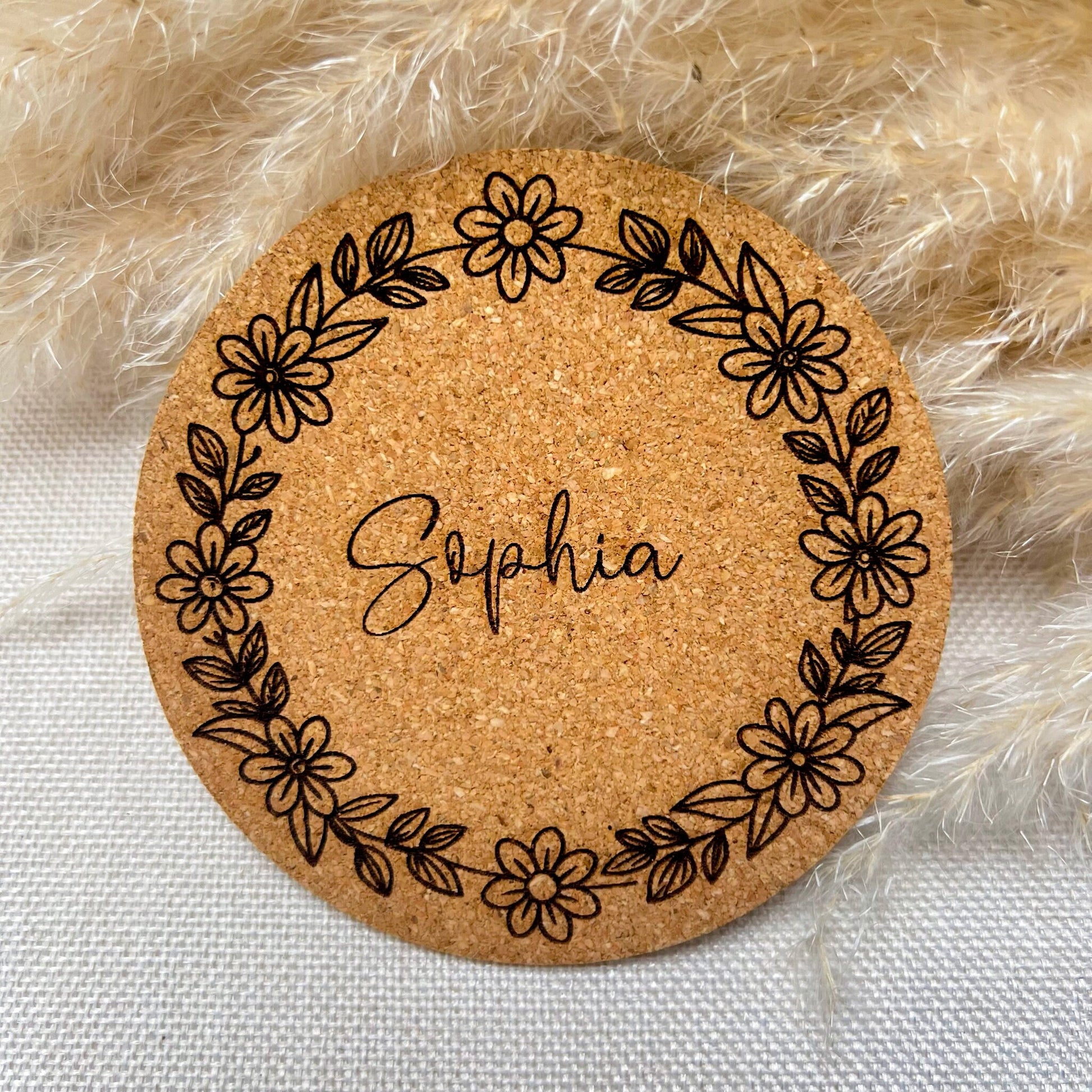 Untersetzer aus Kork für Kinder - Blumen - Lasergraviert