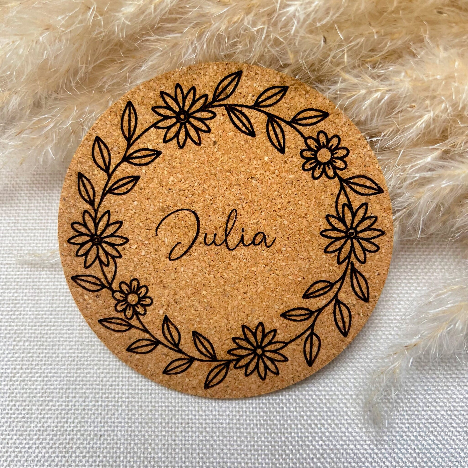 Diese liebevoll lasergravierten Korkuntersetzer sind nicht nur praktisch, sondern auch eine tolle Geschenkidee! Ob als individuelles Geschenk foder als originelle Platzkarten auf z.B. Geburtstagen oder Hochzeiten die später als Erinnerung und Gastgeschenk dienen können diese Untersetzer bieten viele Möglichkeiten. Mit einem Durchmesser von ca. 10 cm und einer Dicke von ca. 3 mm sind sie leicht und langlebig.