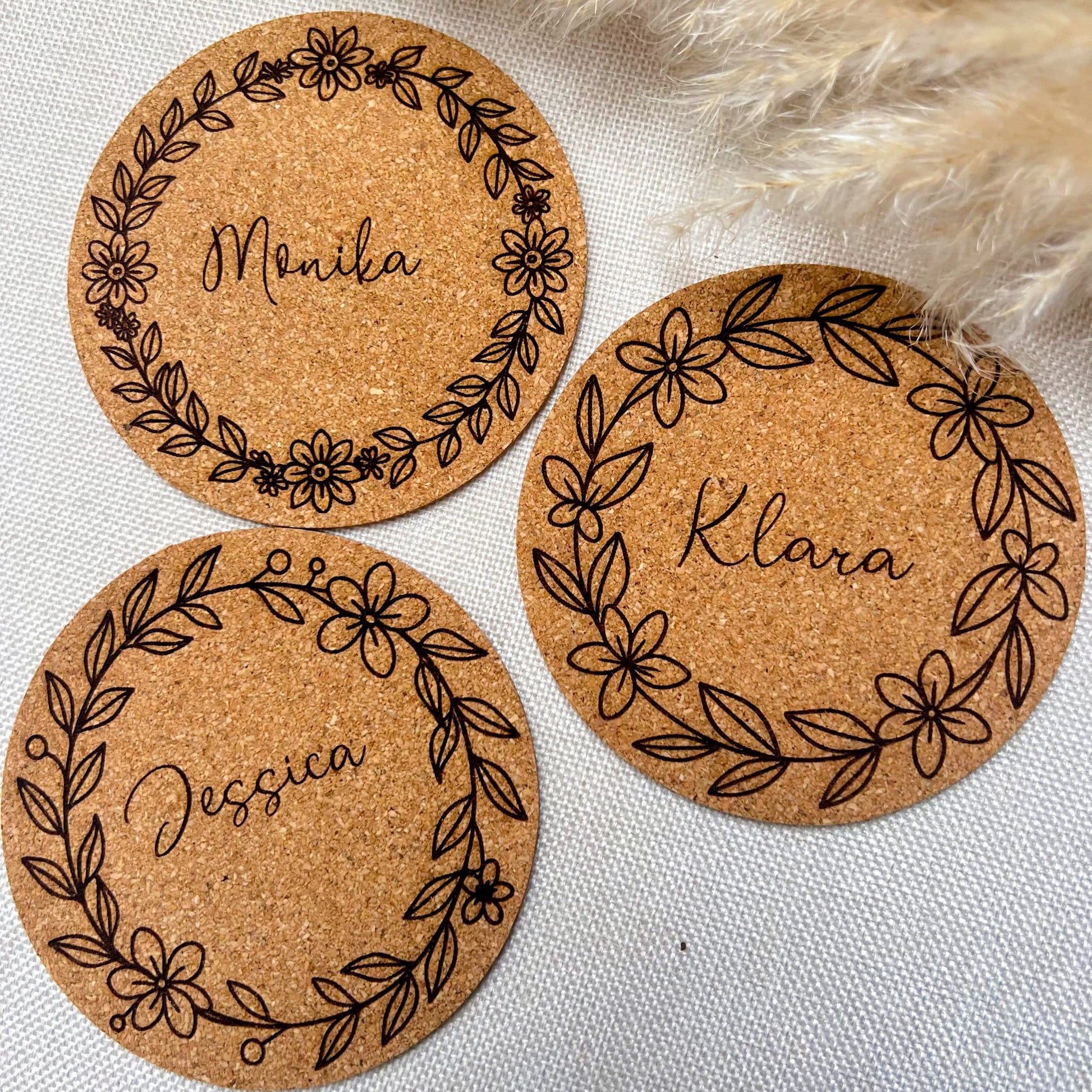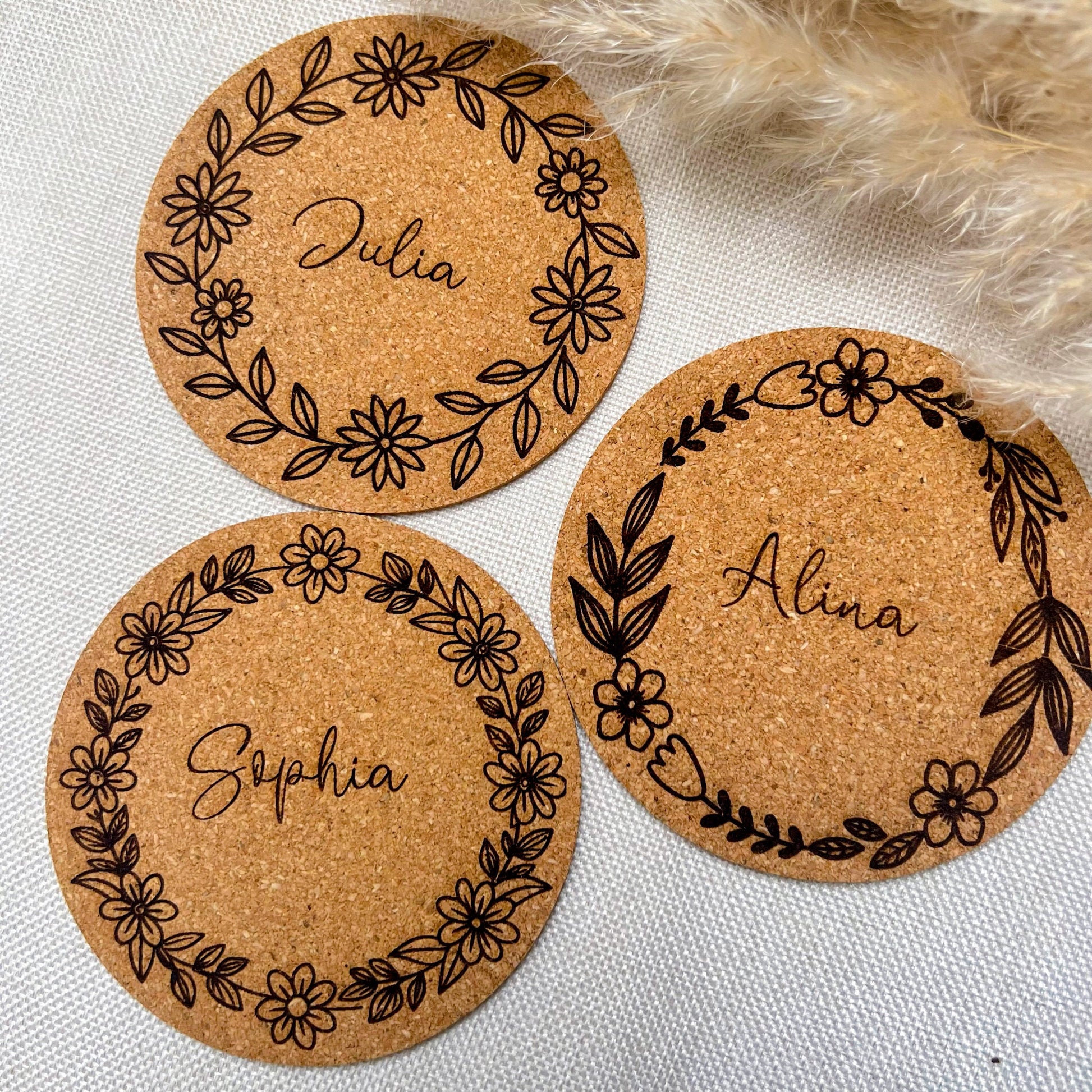 Diese liebevoll lasergravierten Korkuntersetzer sind nicht nur praktisch, sondern auch eine tolle Geschenkidee! Ob als individuelles Geschenk foder als originelle Platzkarten auf z.B. Geburtstagen oder Hochzeiten die später als Erinnerung und Gastgeschenk dienen können – diese Untersetzer bieten viele Möglichkeiten. Mit einem Durchmesser von ca. 10 cm und einer Dicke von ca. 3 mm sind sie leicht und langlebig.