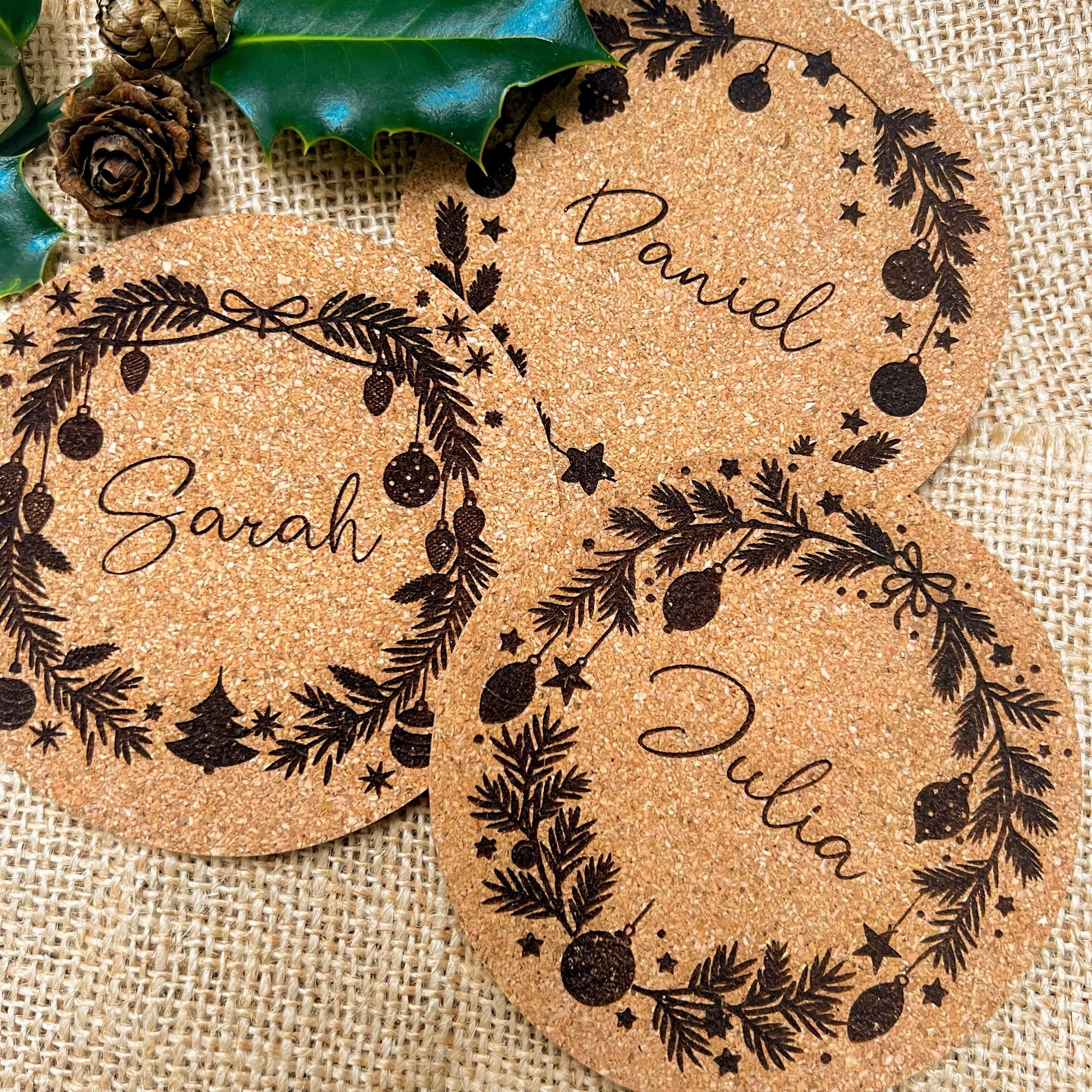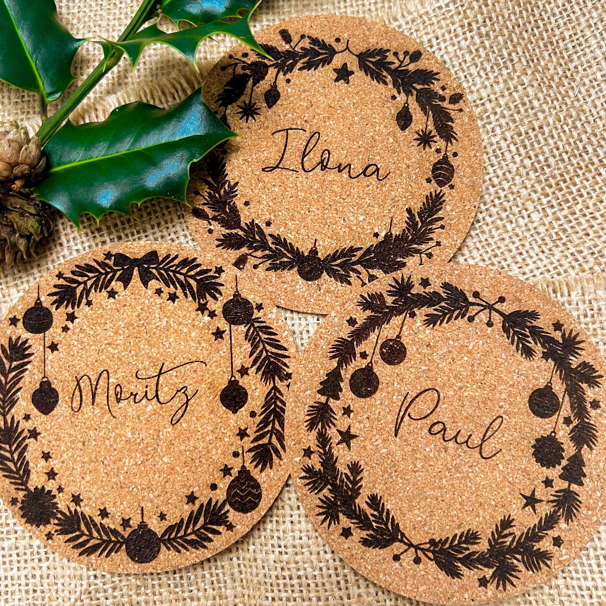 Untersetzer aus Kork für Kinder - Weihnachten - Lasergraviert