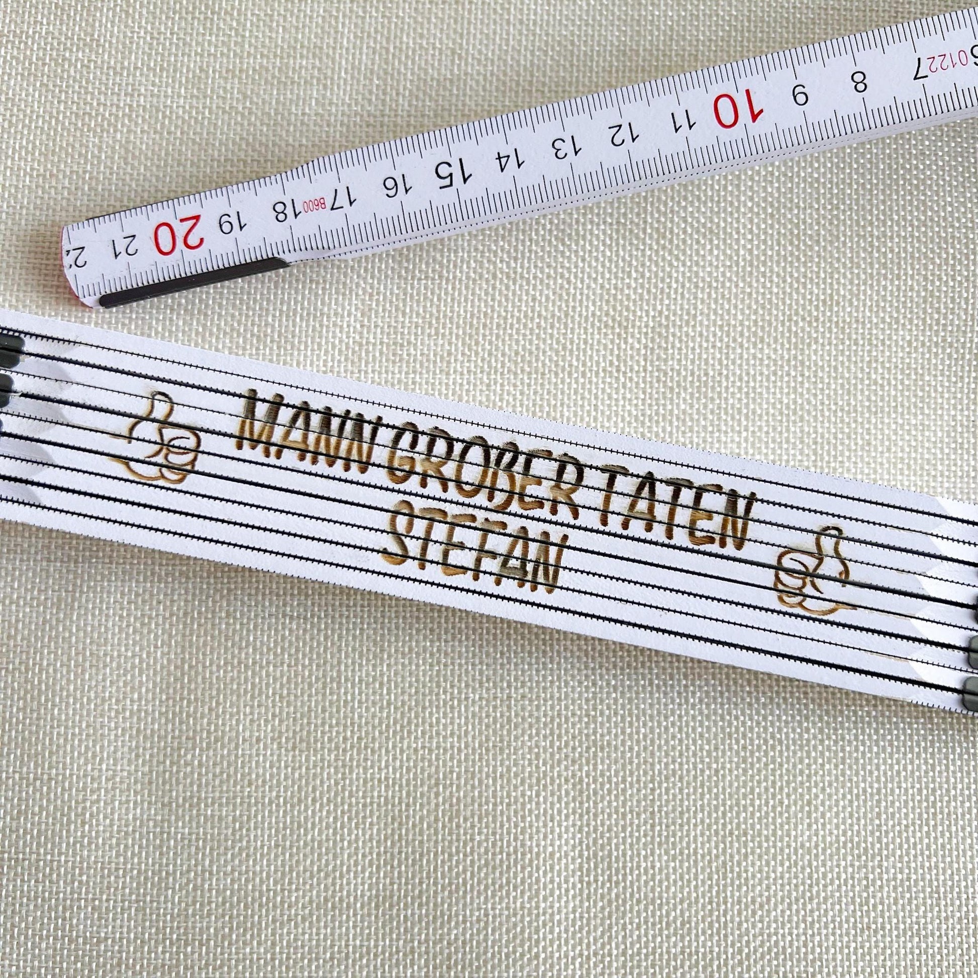 Überraschen Sie Ihre Liebsten mit unserem einzigartigen 2m Zollstock, der mit einer präzisen Lasergravur veredelt wird! Die Gravur ist nicht nur detailgenau, sondern auch dauerhaft und fügt sich perfekt in das Holz ein ideal als besonderes Geschenk zum Geburtstag oder zur Feier eines Hauskaufs. Jeder Zollstock kann mit einem Namen oder einem persönlichen Spruch individuell gestaltet werden, um ihn zu einem unvergesslichen Andenken zu machen.