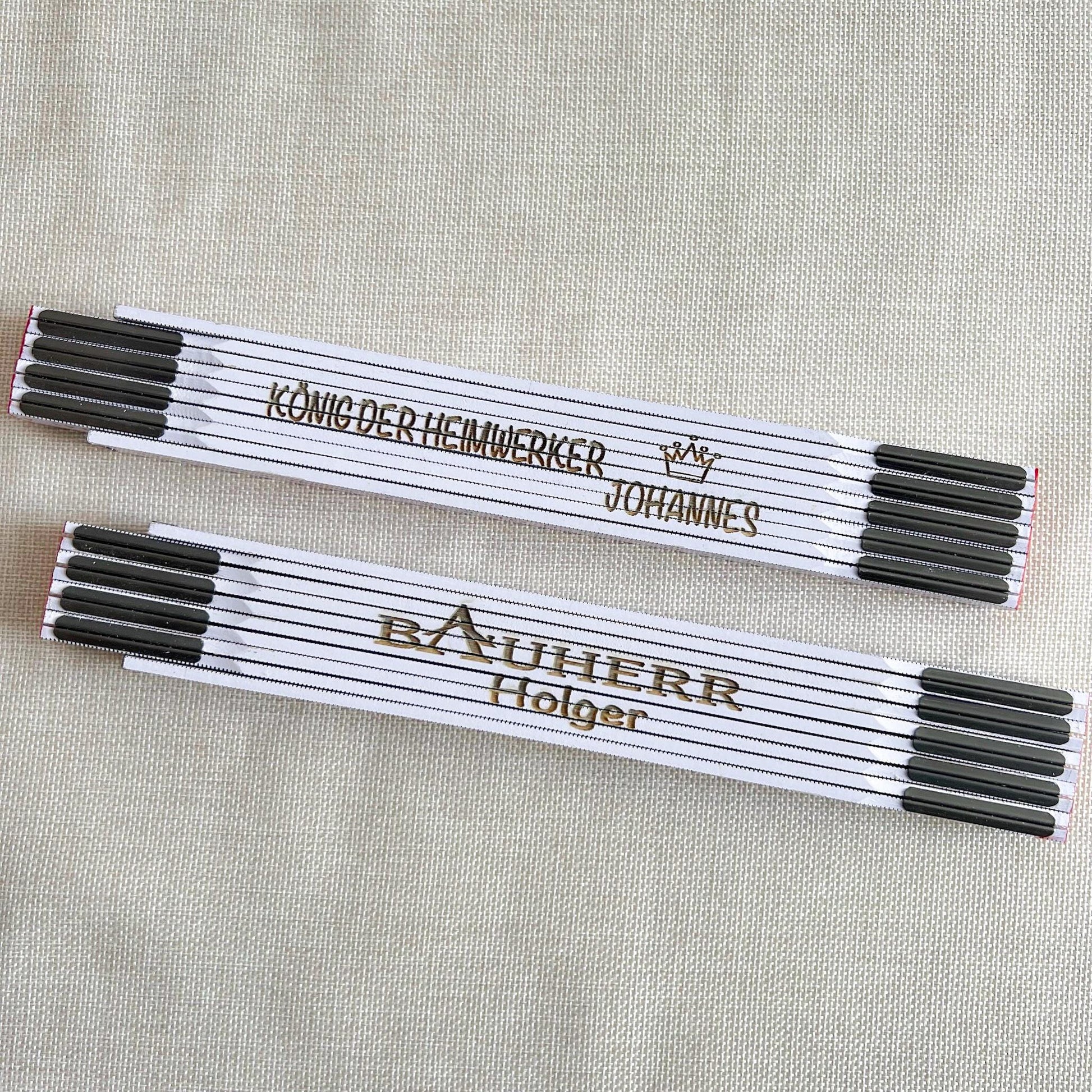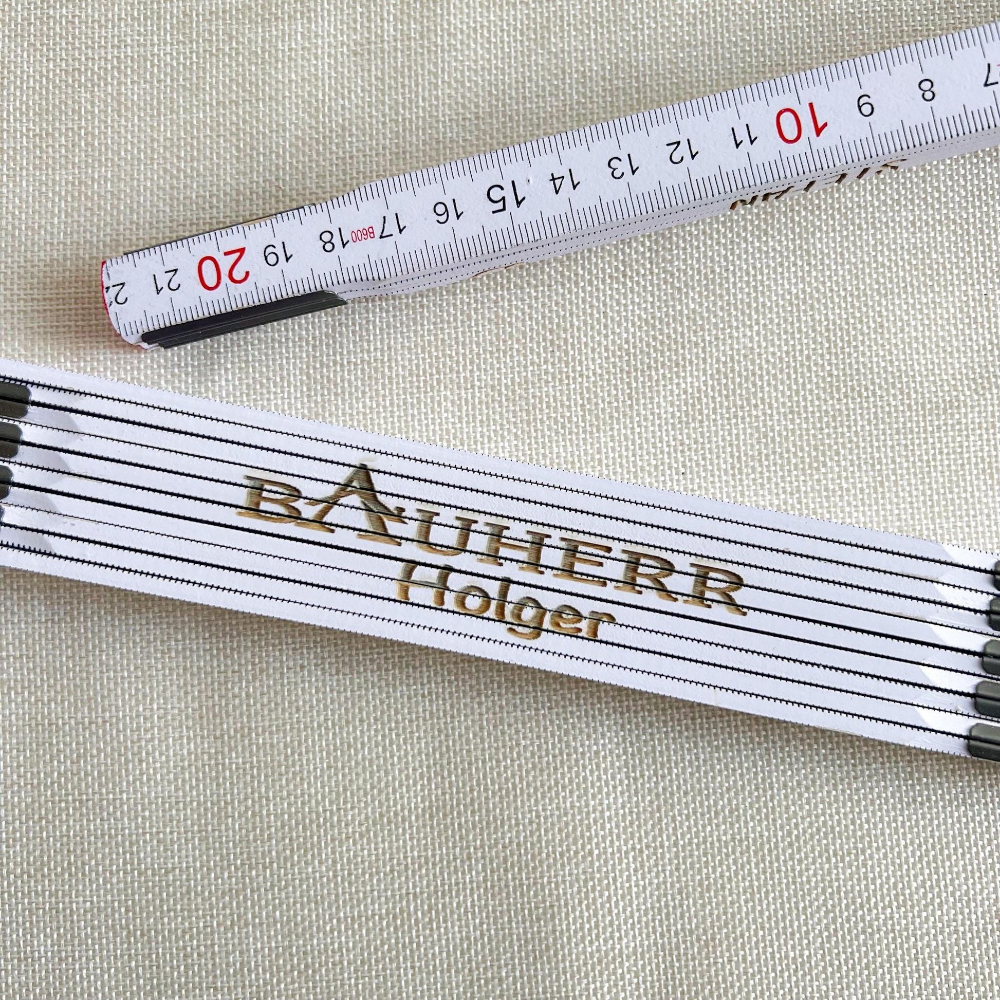 Schenken Sie etwas Persönliches und Praktisches bestellen Sie jetzt Ihren individuellen 2m Zollstock mit edler Lasergravur!