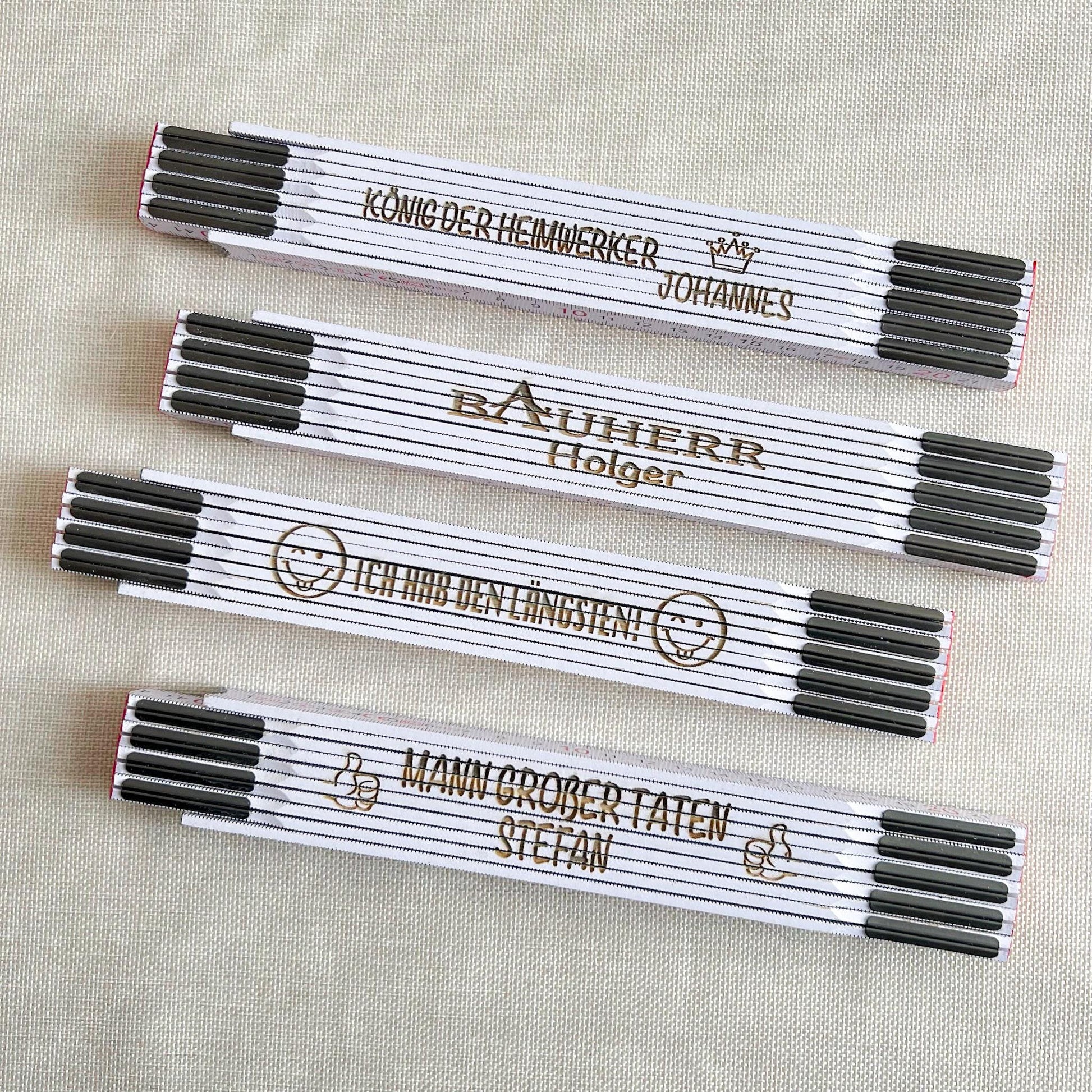 Geben Sie bei der Bestellung einfach den gewünschten Namen oder Text ein, und wir gravieren ihn präzise auf den Zollstock. Ob als Geburtstagsgeschenk für den Heimwerker oder als Glückwunsch zum Hauskauf dieser Zollstock bringt Freude und bleibt in Erinnerung!